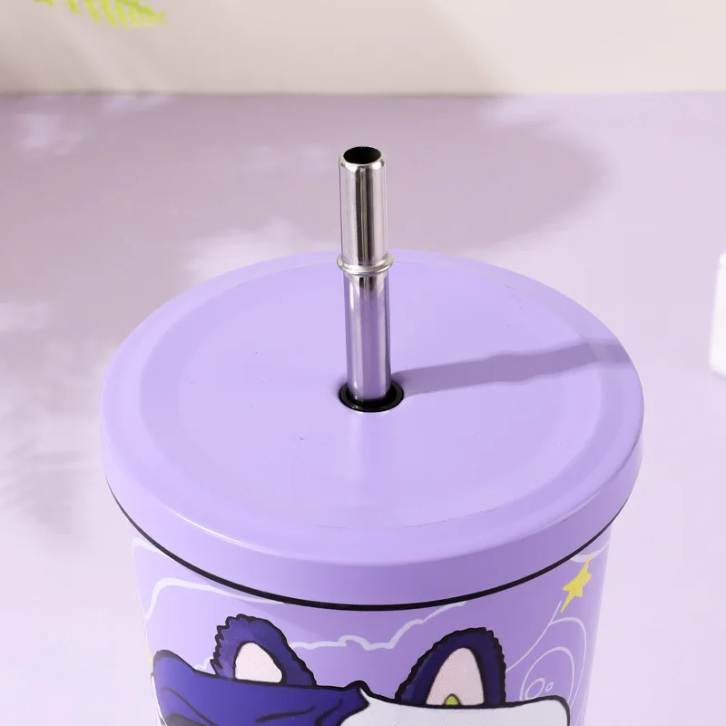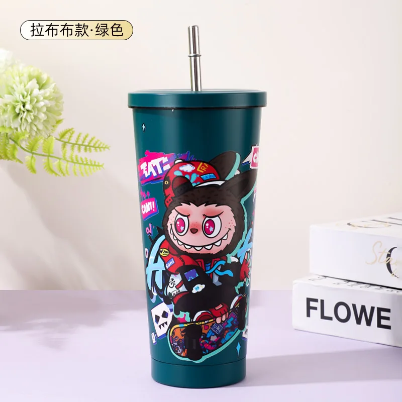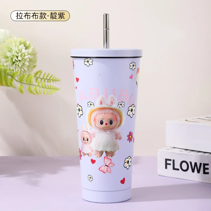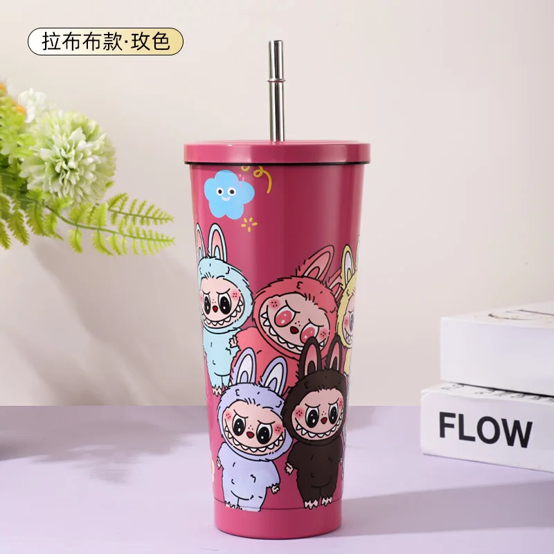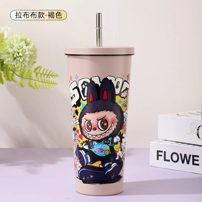 New Cartoon Thermos Cup Stainless Steel Liner Coffee Cup High Value Large Capacity Portable Straw Water Cup Mugs Coffee Cups