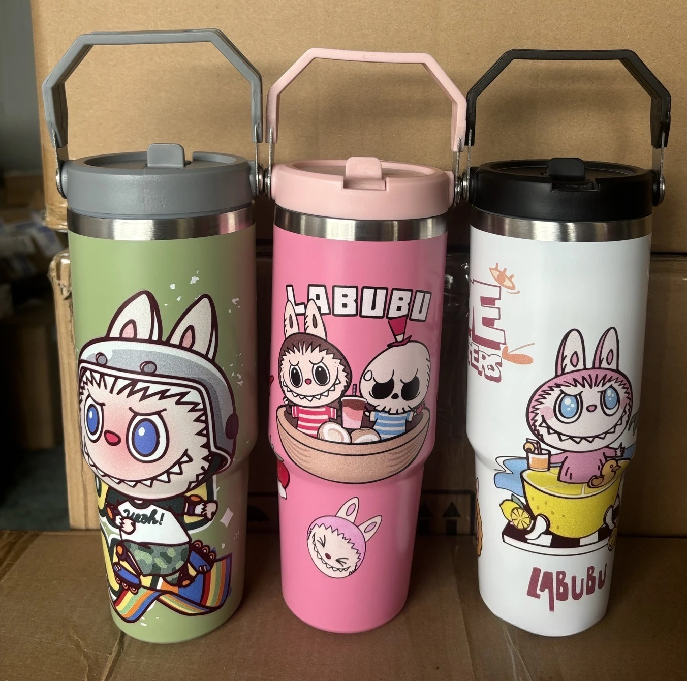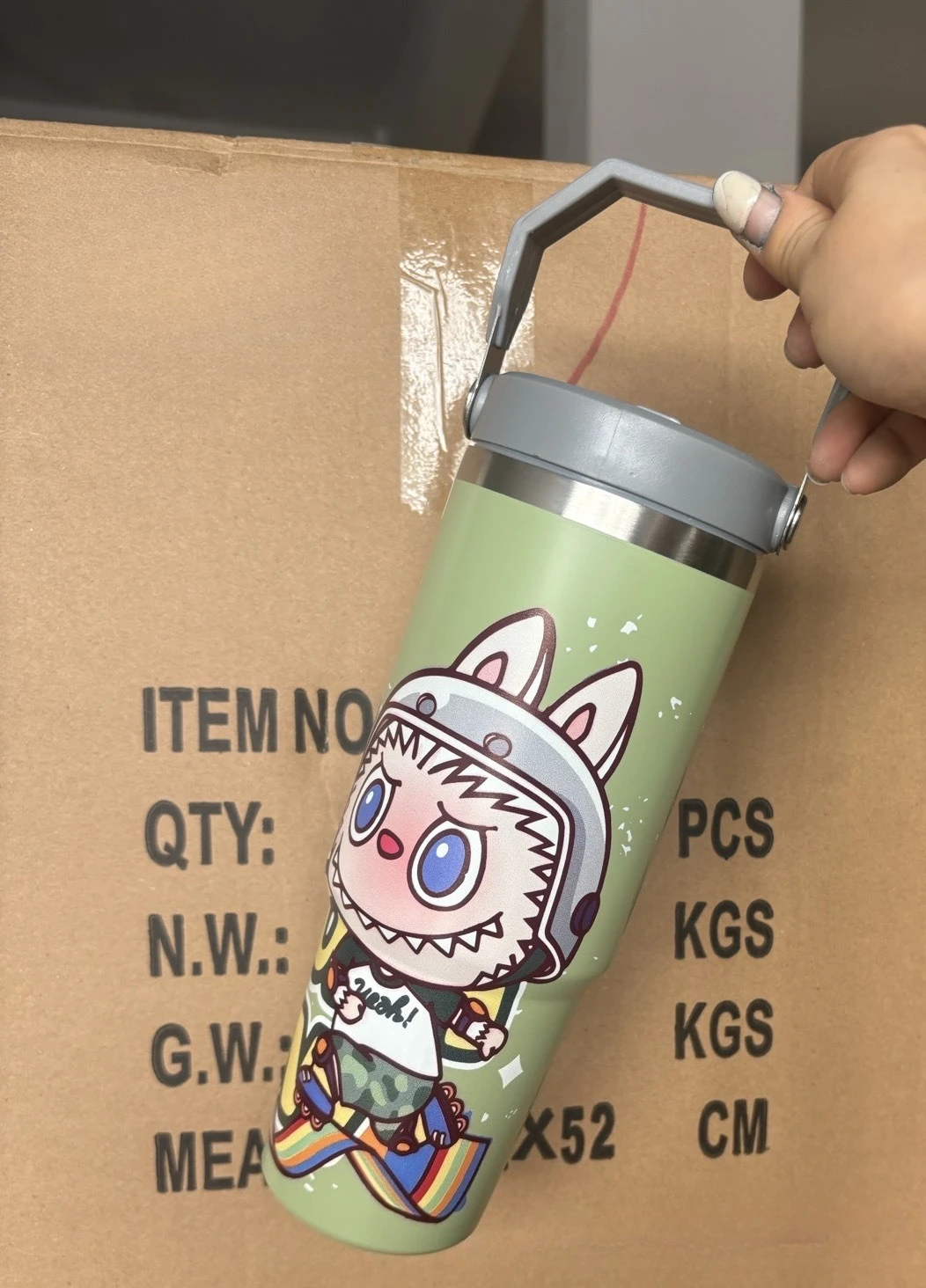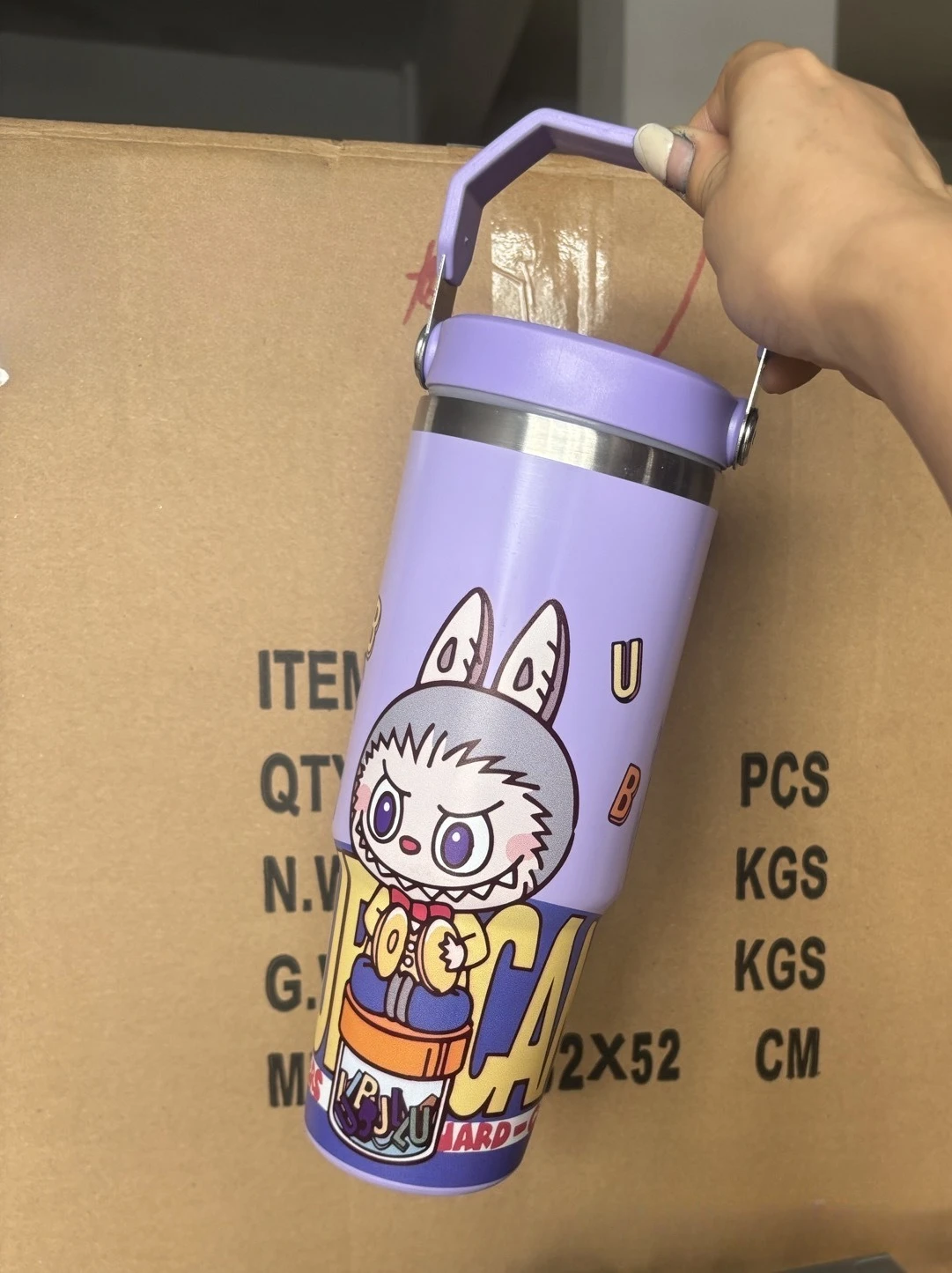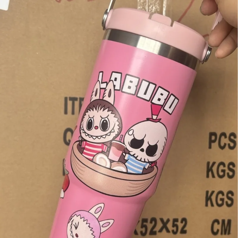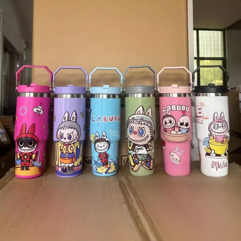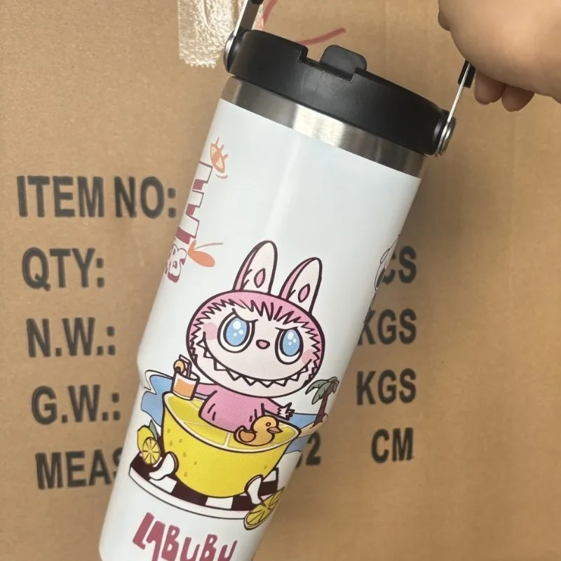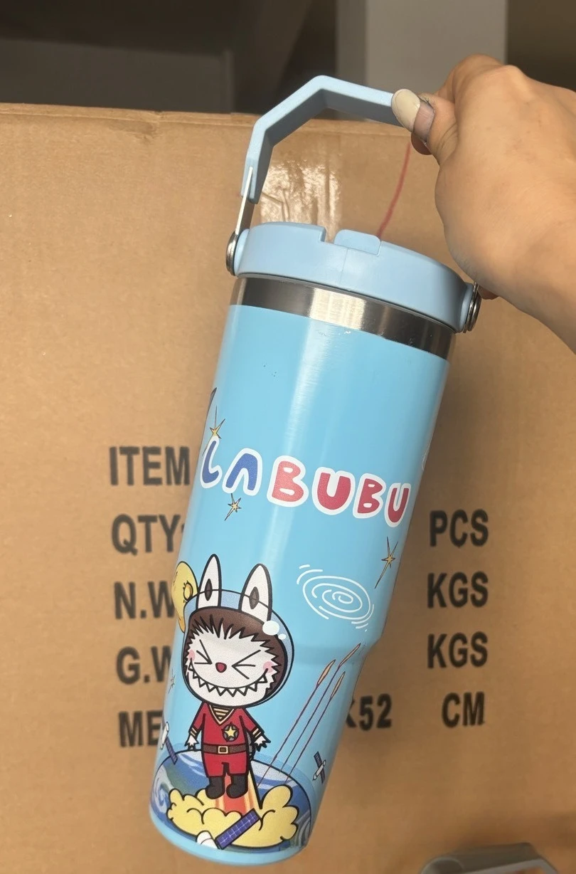 Outdoor Portable Stainless Steel Thermos Cup New Cute Cartoon Pattern Bingba Cup Large Capacity Car Cup Single Drink Handle Cup