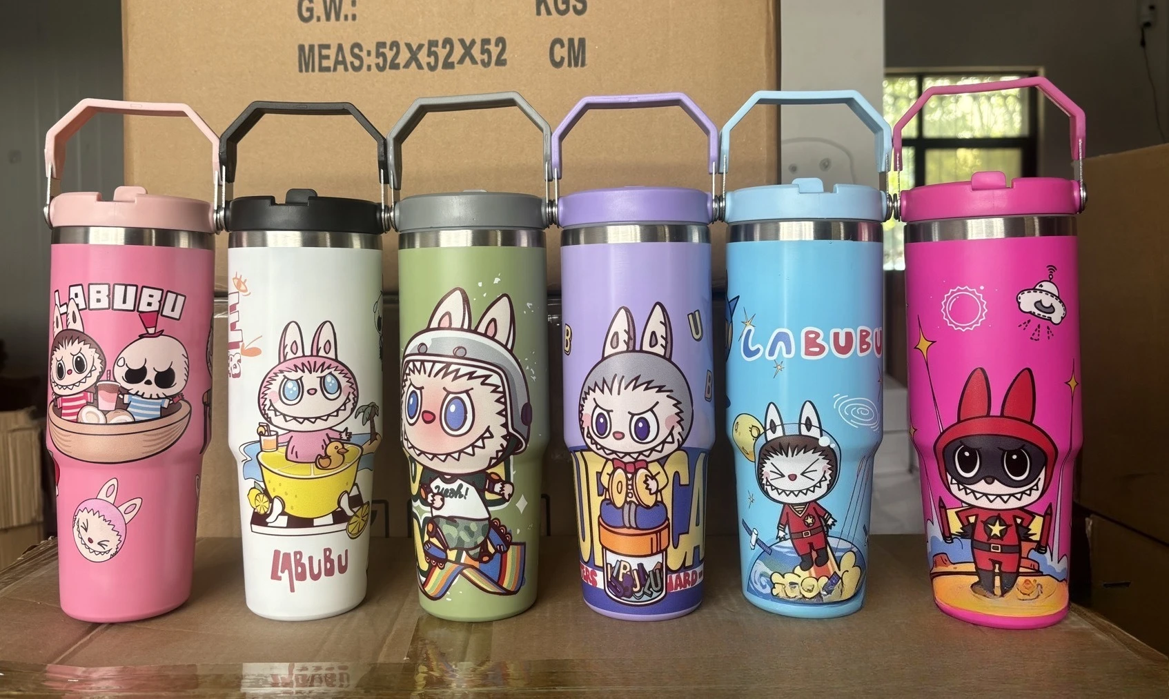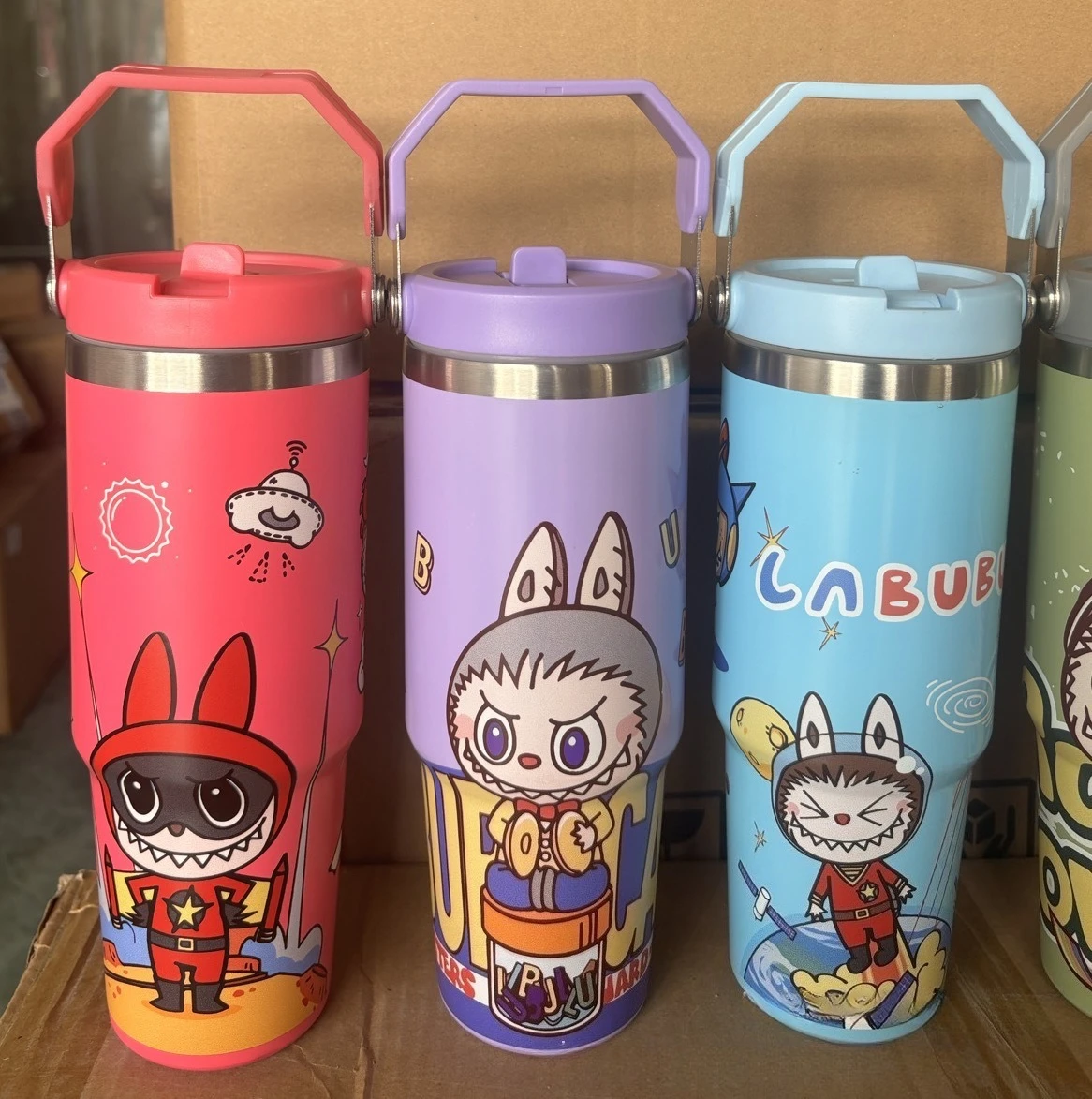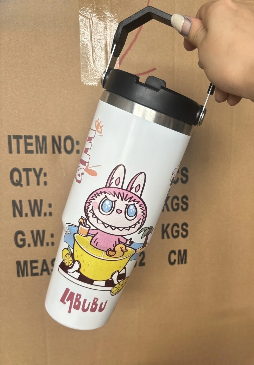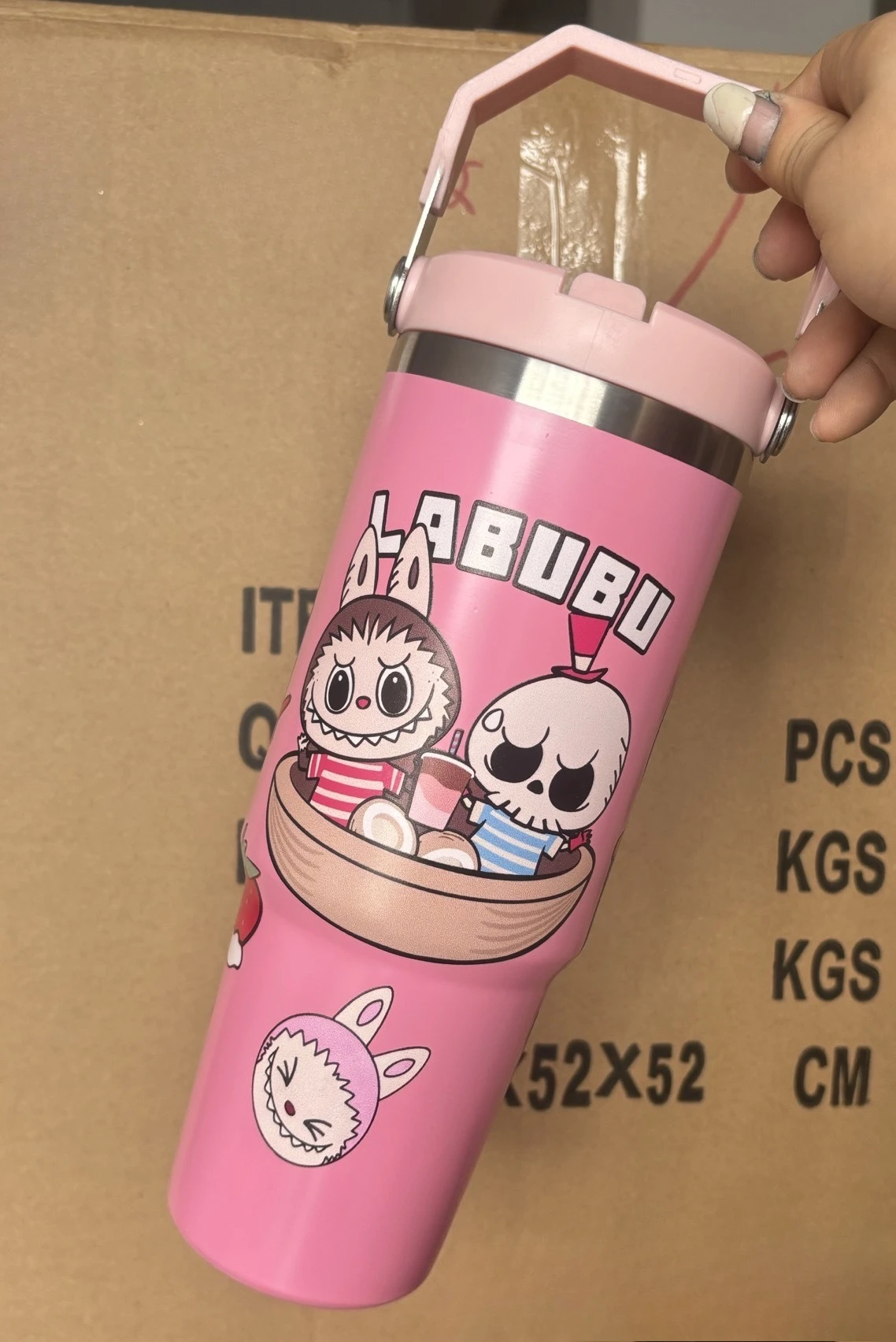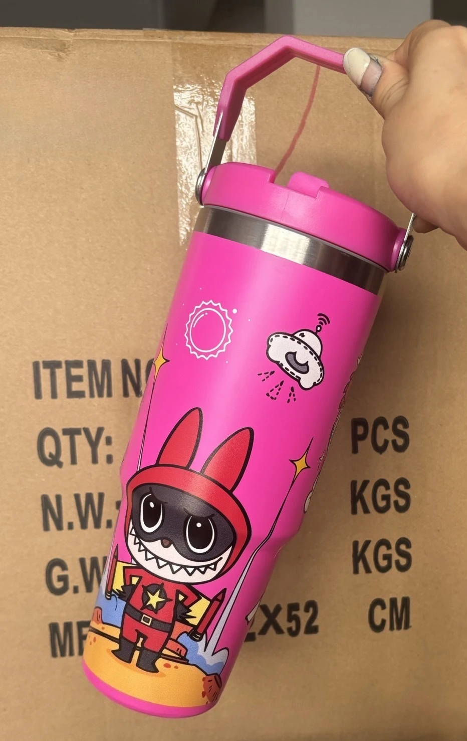 Outdoor Portable Stainless Steel Thermos Cup New Cute Cartoon Pattern Bingba Cup Large Capacity Car Cup Single Drink Handle Cup